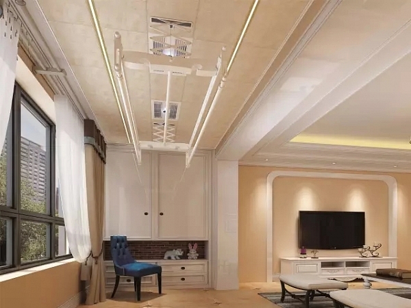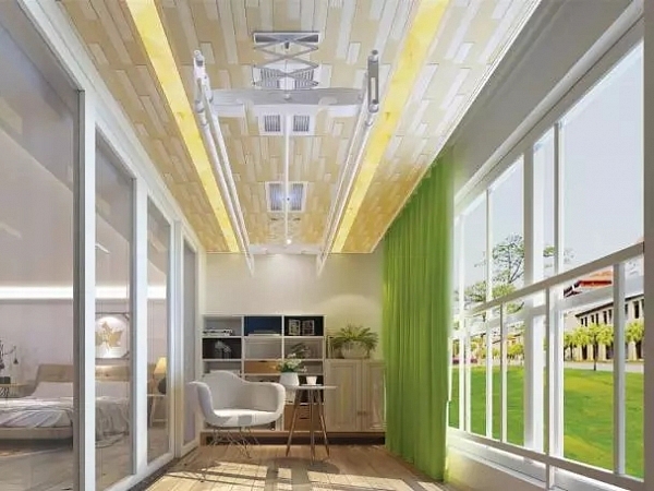 如果說,前面智愛暖空調(diào)是“干衣衛(wèi)士”,那么美爾凱特智麗晾衣機(jī)簡直就是干衣界的007!這種晾衣機(jī)從設(shè)計(jì)來看就非常講究,以陽臺吊頂一體完美融合,集晾衣、風(fēng)干、烘干、消毒、照明五大功能于一體。